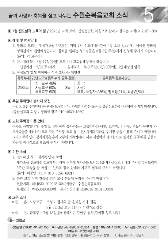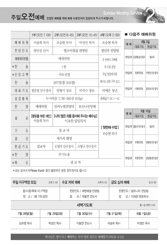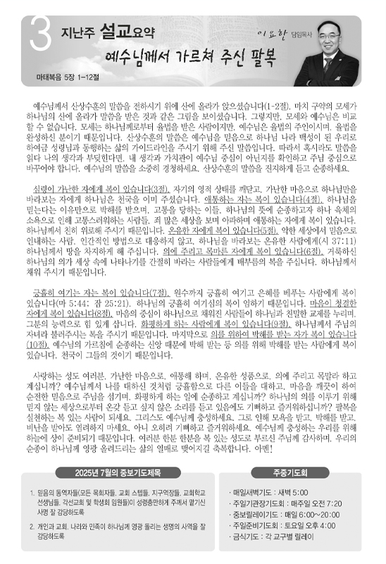 2025년 7월20일 주일 주보