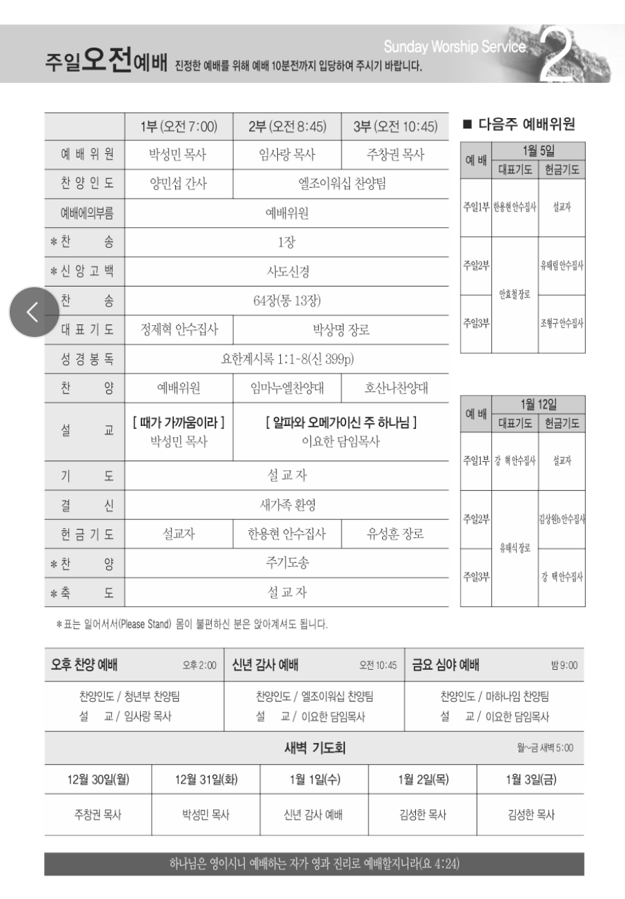 2024년 12월 29일 주일 주보