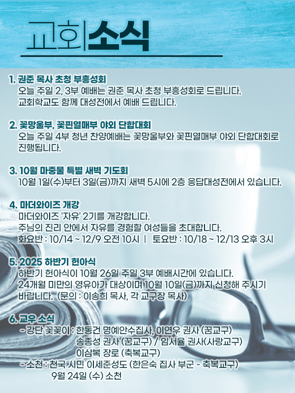 2025.10.5 주일예배순서안내