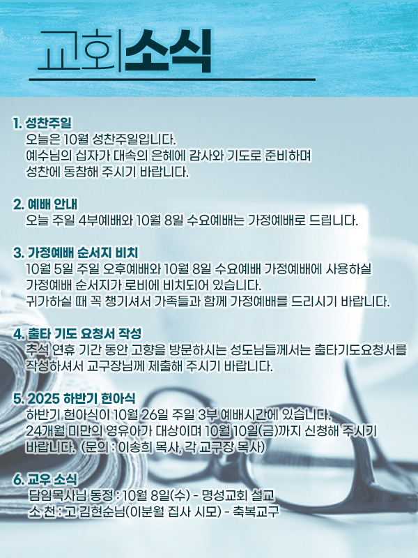 2025.10.5 주일예배순서안내
